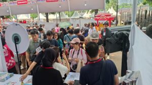 Aktivitas ini menjadi sarana interaksi yang efektif, menciptakan suasana yang meriah dan penuh keakraban dari para pengunjung dengan staf booth.